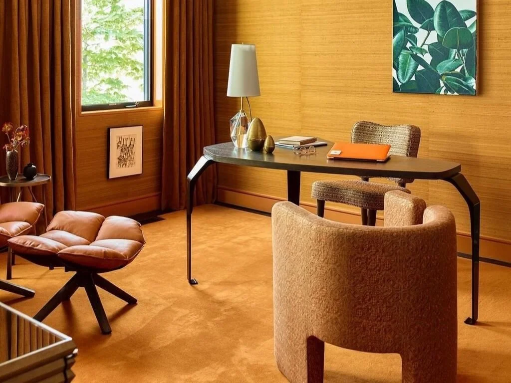 Incorporating PANTONE 17-1230 Mocha Mousse into your design palette can be an exciting adventure, especially when paired with other trending colours for 2025. Warm, earthy yellows and terracotta pinks beautifully complement its rich undertones, while soft reds and deep wine shades like burgundy and merlot create a luxurious, layered aesthetic. These colour combinations evoke a sense of harmony and warmth, perfect for creating inviting living spaces. Consider using ‘Mocha Mousse’ as a base colour for walls or furniture, then accentuate it with textiles, artwork, or decor elements in these vibrant hues - as seen above, the ‘Mocha Mouse’ accent chair is uplifted by the vibrant mustard yellow carpet and wallpaper. This approach not only enhances the cozy atmosphere but also allows you to express your unique style, making your interior spaces feel as delectable as a fine cup of coffee or a piece of chocolate.